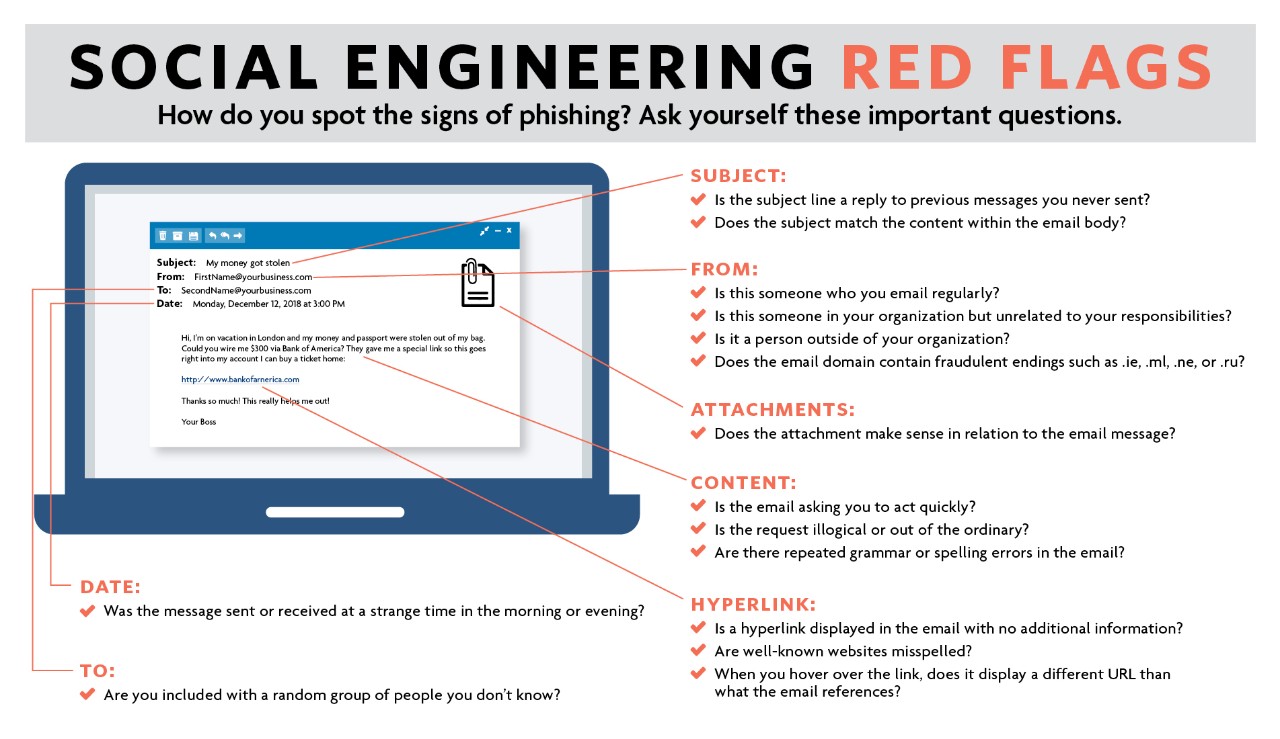 Phishing is when criminals attempt to lure personal and financial information, or passwords from unsuspecting individuals and businesses through emails disguised as credible sources. These emails can appear with a detailed description, or displayed as a receiving error, requiring the recipient to click on a link to view the message. They can also appear as a false invoice or confirmation of a purchasing contract that requires recipients to review an unfamiliar document. Accessing these corrupted files or links can result in a hacker getting ahold of your private information.