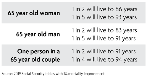 Obviously your longevity is unknown but creating a suitable investment plan can help provide the income you need to live your retirement in the style you choose—for 10, 20, 30 years or more. Consider these average life expectancies shown in the table above.